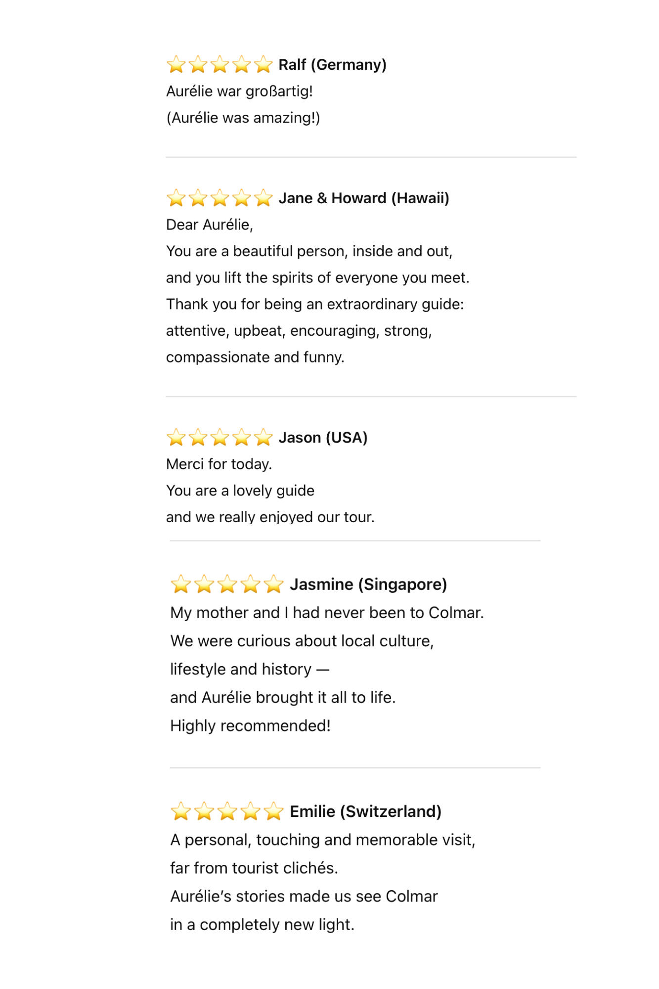 Born and raised in Colmar, I’ll take you through my hometown with stories, and the kind of small details only a true local would know.My tours blend humor, history, and personal memories: from the places I played as a child to my grandparents’ stories from the war.